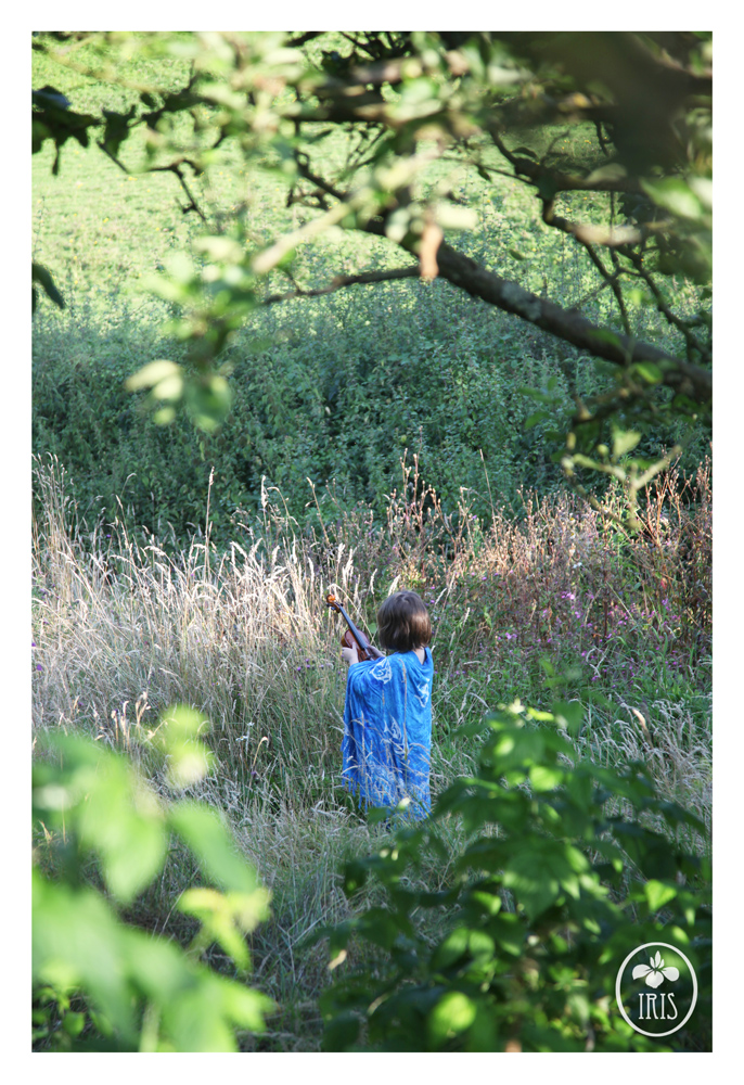 Iris in the wild grasses with the violin